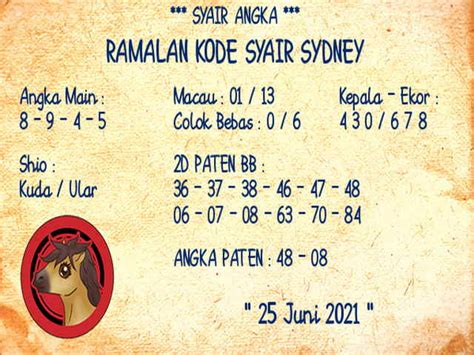 Dengan menggunakan syair HK yang kami sediakan, Anda bisa meningkatkan peluang Anda untuk menang. Cukup tafsirkan syair-syair tersebut dengan cermat, temukan angka keberuntungan Anda, dan pasang taruhan Anda.